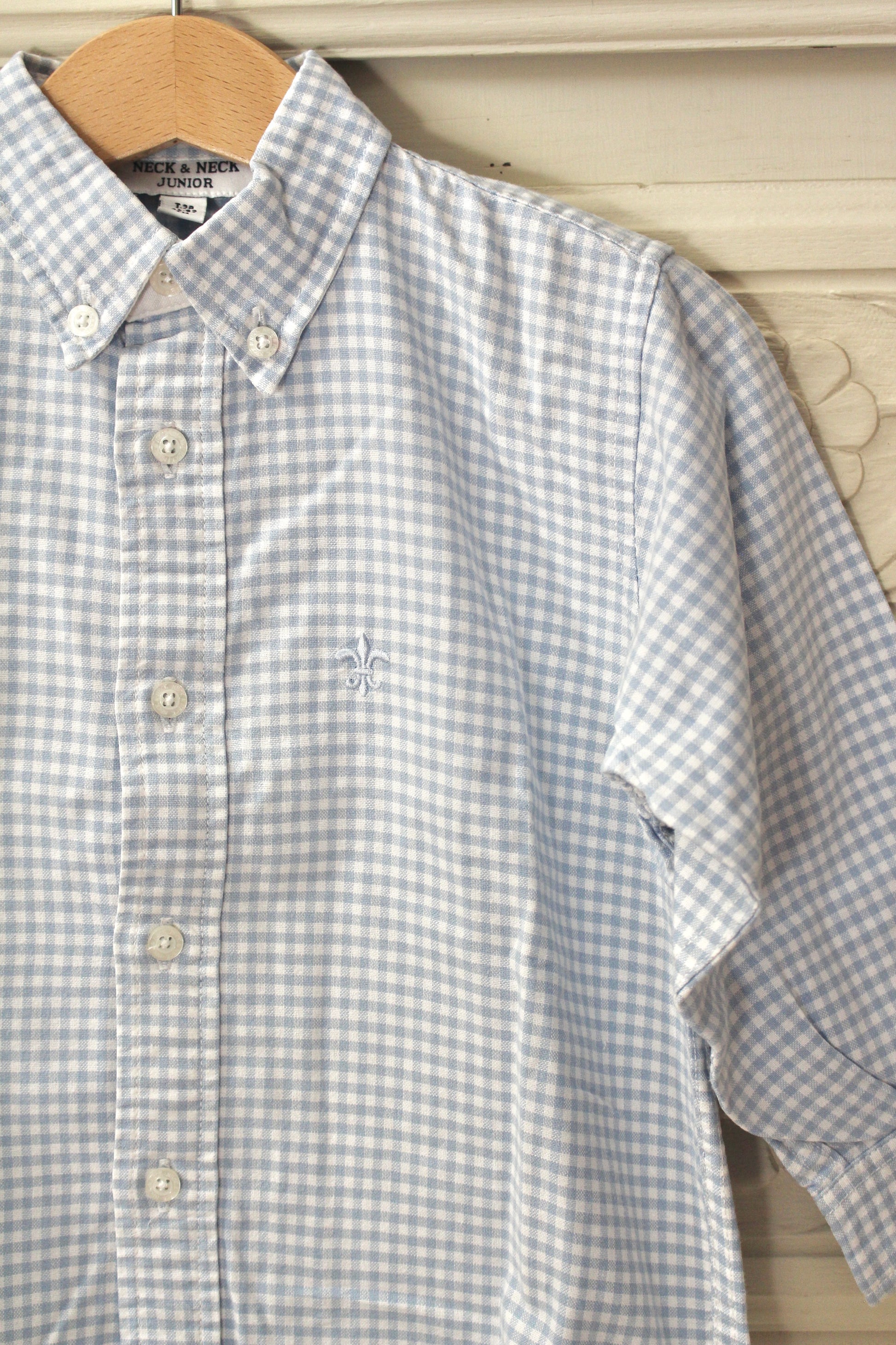 Ismaël est une chemise élégante à l'imprimé vichy petit carreaux bleu ciel. Intemporelle donc comme on aime ici chez Petiote & Redingote !