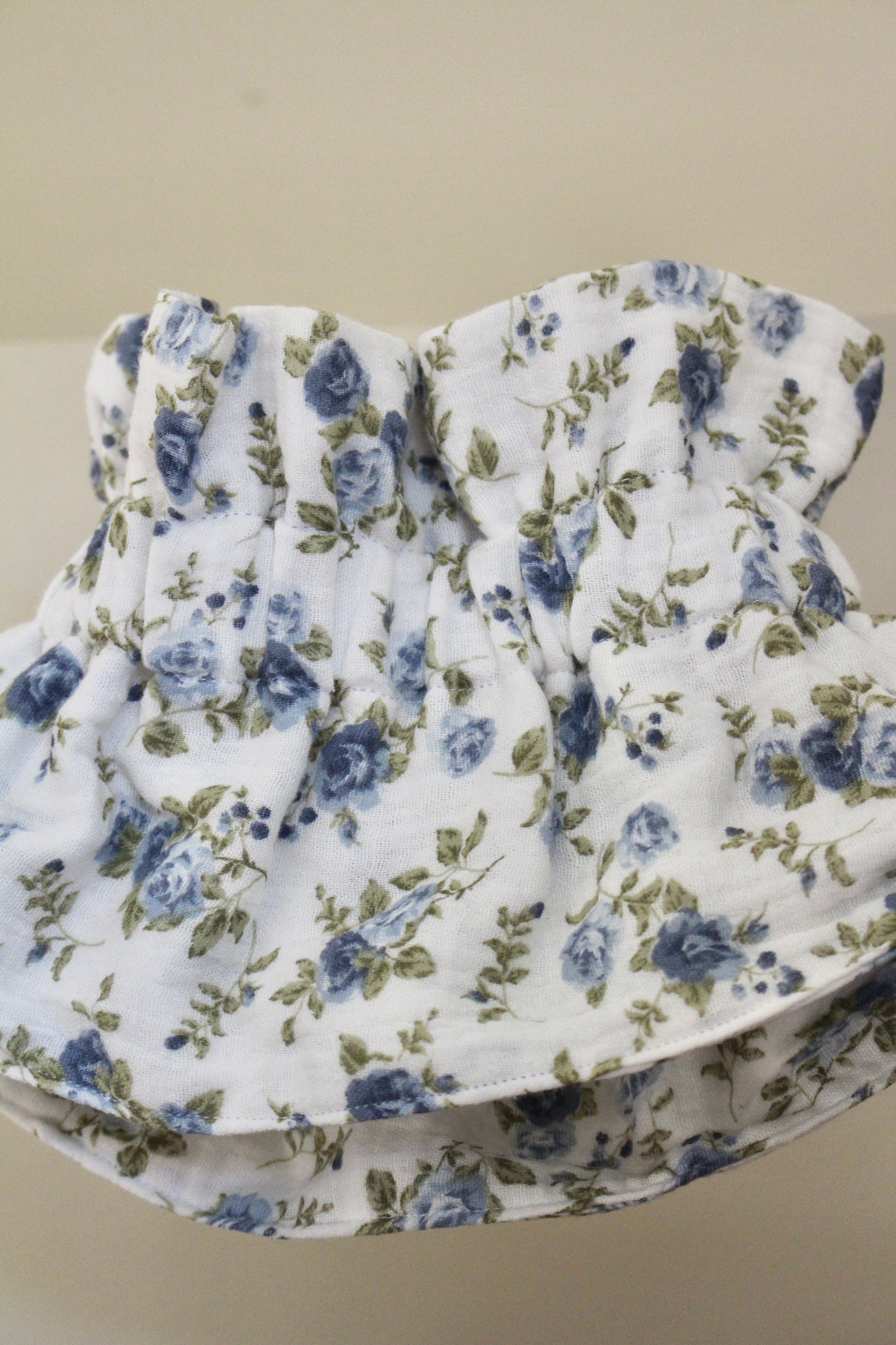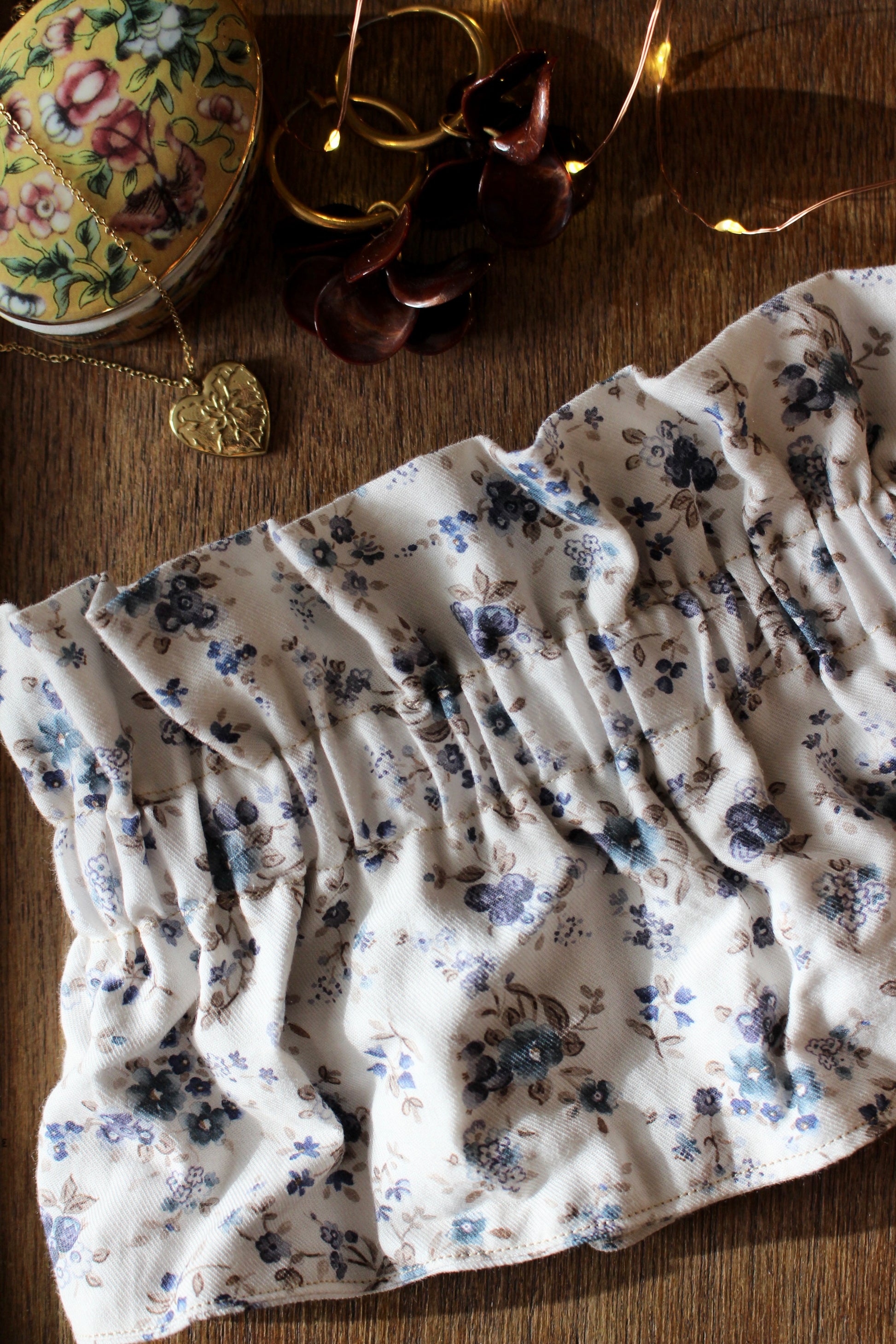 Confectionné dans un gaze de coton léger et agréable à porter, ce col se distingue par ses délicates fleurs bleues. Son jeu de fronces délicates et sa coupe structurée viennent sublimer une tenue en un seul geste, porté sous un pull.