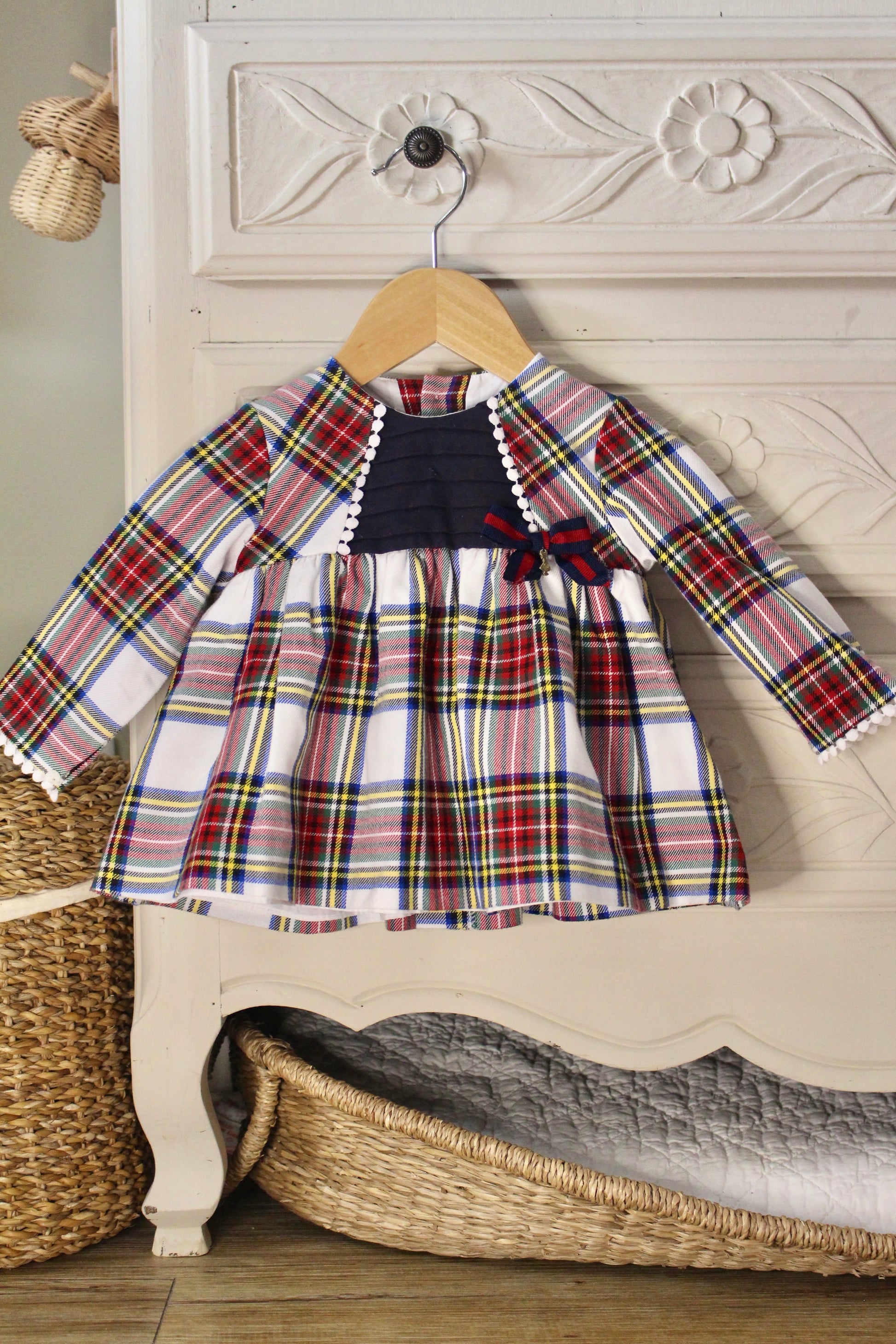 Son motif écossais (tartan) intemporel, ses manches longues et son joli plastron bleu marine apportent une touche élégante et traditionnelle. De petits détails raffinés, comme la bordure pompons et le nœud décoratif, en font une pièce unique et pleine de charme. Offrez une pièce de qualité à votre enfant, peut être pour son premier noël, tout en faisant un geste responsable grâce à la seconde main.